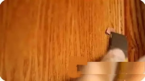 2小時后補釘眼 將格麗斯和膩子粉攪拌均勻 用小刀將膩子粉填補在釘眼上 釘眼顏色與板材顏色基本一致注意不要堵死周圍毛孔。