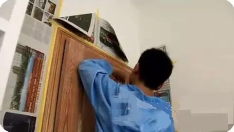 用美紋紙和舊報紙對周圍墻壁進行遮蔽。