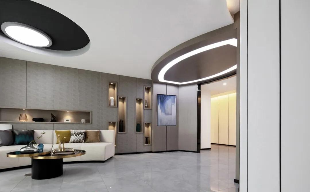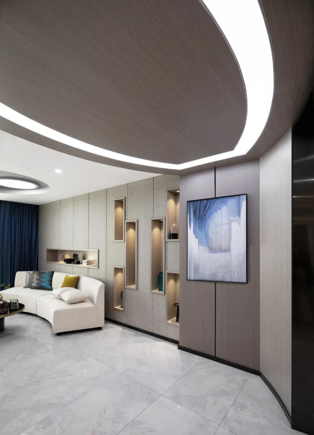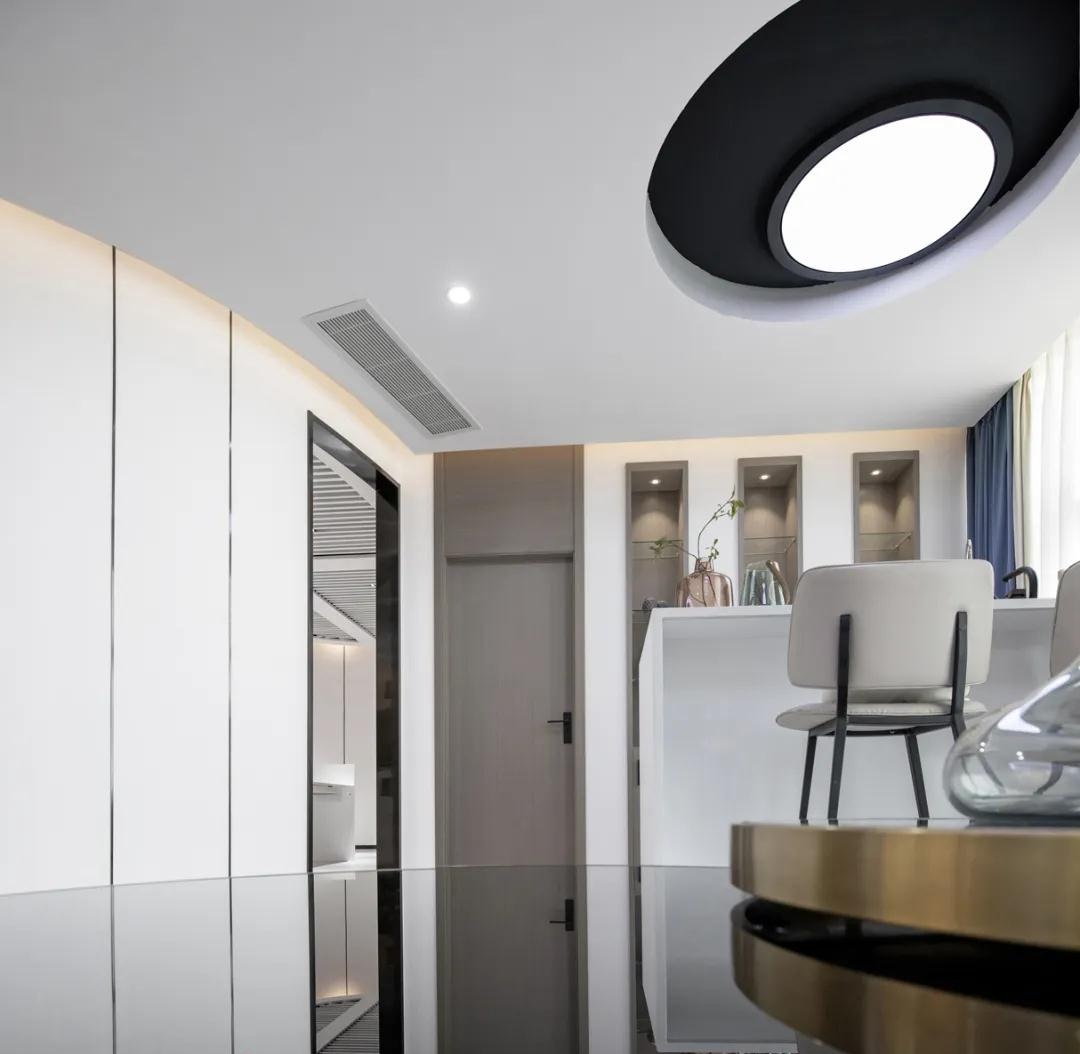 Large area of white space, greatly expanded the space. Under the drive of black gold tea table, the modern beauty of feeling of a touch of dexterity bone was added in anteroom. The sofa is used to close the eyes, and the island is a place for tea exchange.