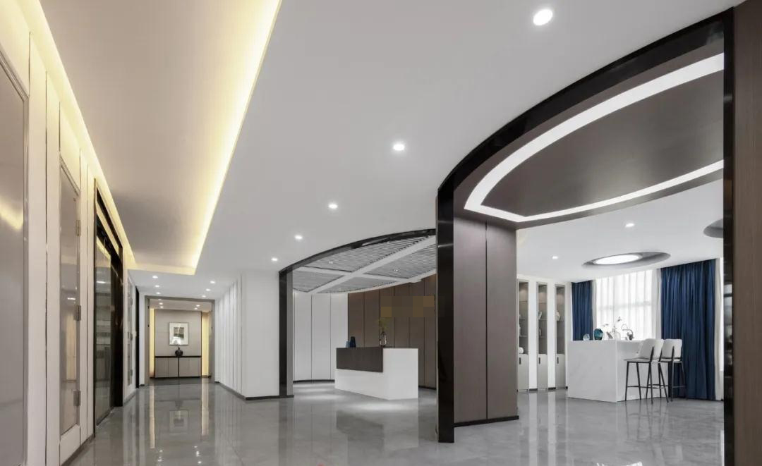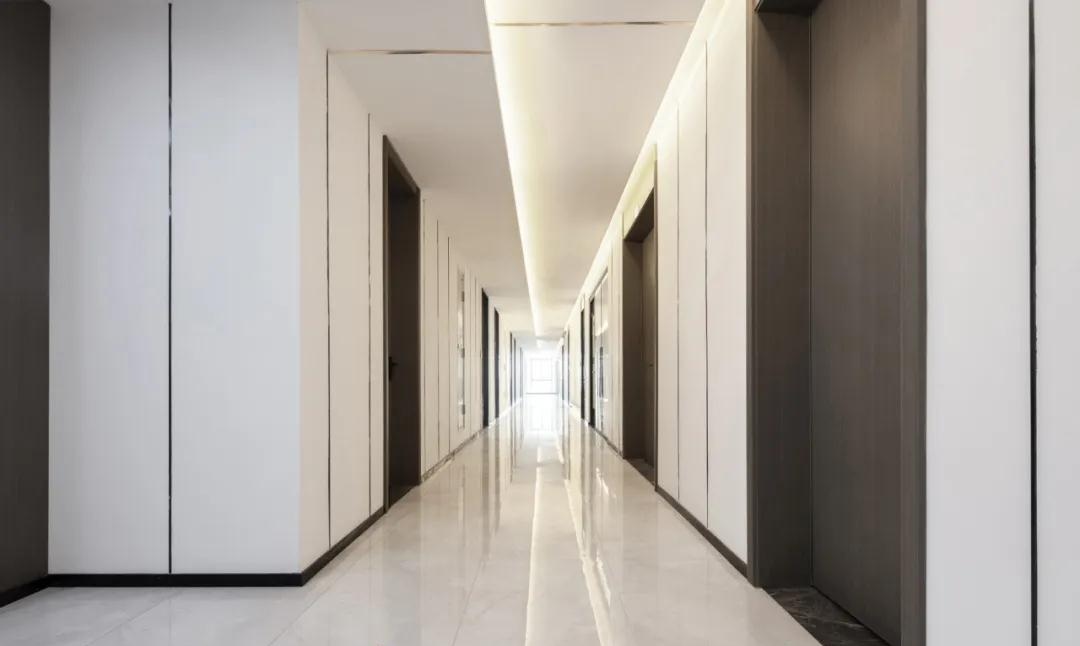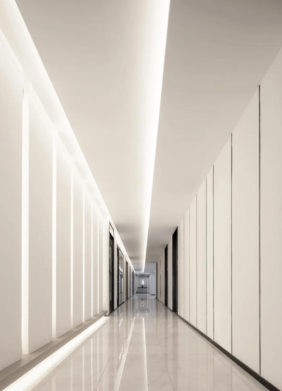 From the ceiling of the gap diffuse out of the warm light, invisible and powerful division out of a corridor. At both ends of the corridor, there are bright Windows to introduce fresh air and natural light. In the space of asymmetrical display of a line, moving a quiet, is the wisdom of the design.