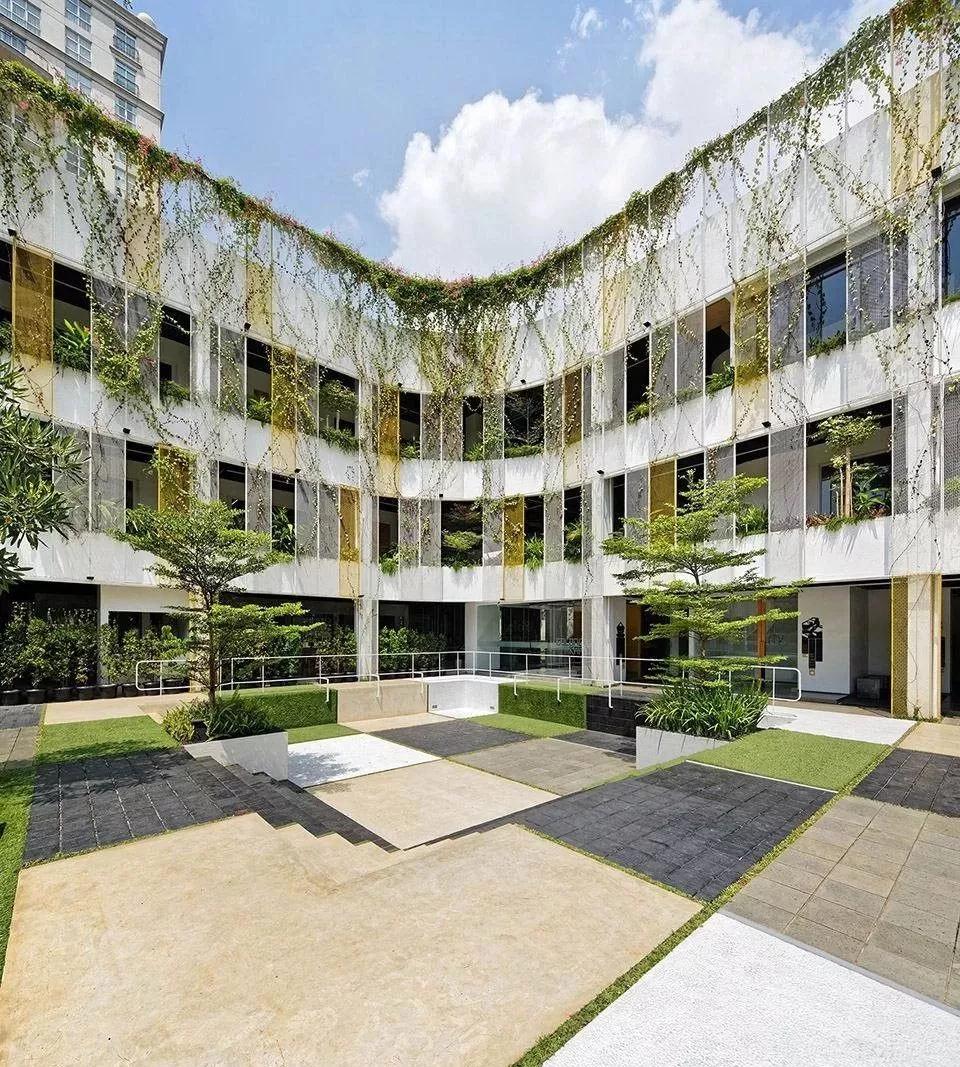 下沉式庭院面積有限,不要種太大的樹,最適合灌木和爬藤植物,沿墻面做成垂直綠化的形式,這樣后期打理起來會比較容易,且不會讓濕氣太重。