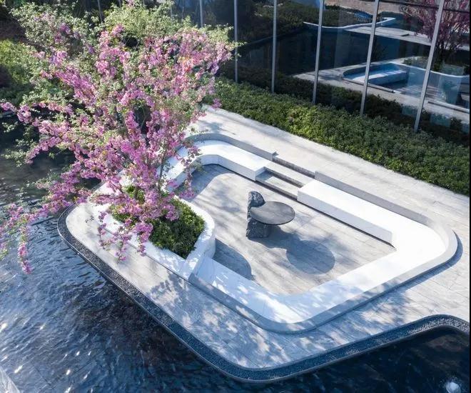 一般下沉式庭院在建造時就已經匹配好地面的排水系統了。有些樓盤的建筑地形較高,所以半下沉式的庭院,其標高略高于市政管網,或庭院周圍有地勢較低的溪流、河流等,可以利用重力,通過排水溝、集水管道,將庭院的水排入其中。如果下沉式庭院的地勢低于市政管網,需在庭院內設置集水坑,先讓水流入集水坑中,再通過水泵加壓排出,這類庭院的排水性較差。業主在庭院設計時可以添加滲井、雨水調節池,或者直接設計水景,來調節降水。