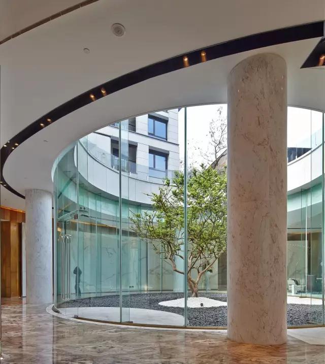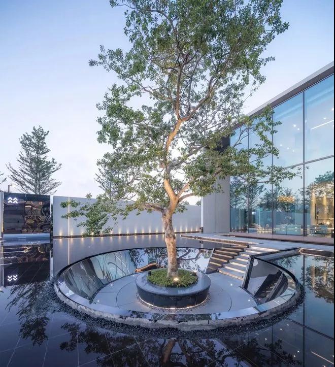 對于這種下沉式庭院,在做頂面設計時,最好設置排水措施,讓雨水排到室外,從而減輕下沉式庭院的排水壓力。透明玻璃處也要做防水處理,以防頂部滲漏。