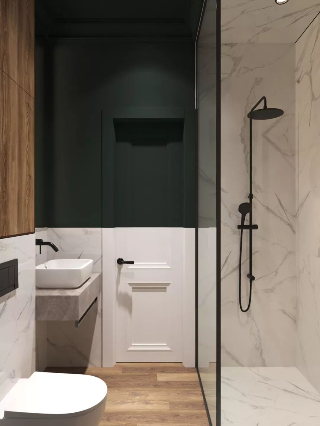 搭配矩形鏡燈和純黑花灑,未來(lái)感十足