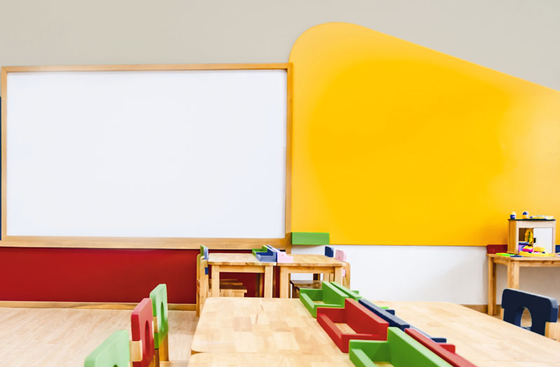 隨著假期結束,即將回到學校,本月的調色方案探索了教育環境的色彩。專注于學前班和小學空間,主色調和次色調是我們的選擇。